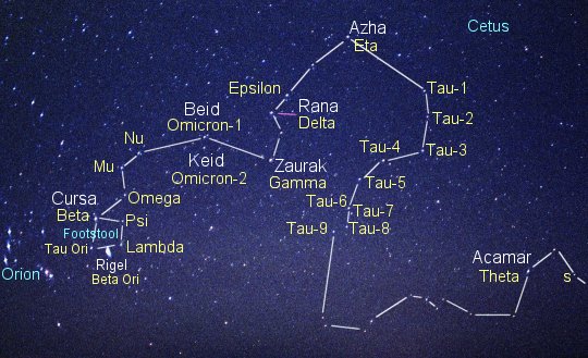 Es una estrella brillante, y sin embargo pasa frecuentemente desapercibida gracias a su vecino “incómodo” Orion. De hecho, a pesar de ubicarse completamente en una constelación ajena, debe su nombre al famoso cazador, pues “Cursa” proviene de una frase árabe que significa “el banquillo del Gigante (o del que está al centro)” ¡Pobre! De ser la segunda estrella más brillante de Eridanus, se tuvo que conformar a ser poco más que el peldaño del pie izquierdo de Orion. El banquillo estaba originalmente formado por tres o cuatro estrellas, pero la estrella más brillante –Cursa- recibió el nombre colectivo.